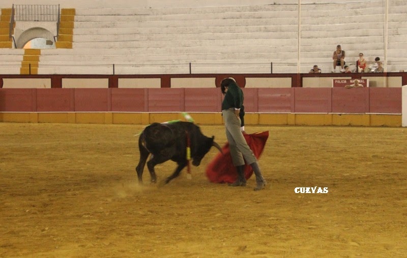 La joven cordobesa Rocío Romero nos sorprendió gratamente ayer con su toreo ante un becerro nada fácil, aunque ya venía apuntando maneras en sus últimas actuaciones, ayer sacó a relucir todo lo que llevaba dentro. Recibió bien de capote a su enemigo rematándolo con una media muy buena. Ya en la muleta, tras brindar su faena al público asistente, realizó una faena muy compacta sobre todo por el pitón derecho, donde cuajó tandas buenísimas de principio a fin. También dio dos circulares que se tragó el becerro, incluso una tanda con el izquierdo, pitón por el que el animal no iba. Remató su actuación con un pinchazo y media fulminante que le sirvió para cortar las dos orejas, más que merecidas.