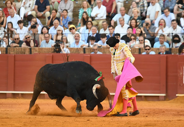 Al quinto lo paró Zulueta por verónicas. Con calidad pero poco recorrido, lo intentó el sevillano por ambos pitones, dejando los más destacados con la mano izquierda. Cerró doblándose por derechazos y se le atravesaron los aceros.